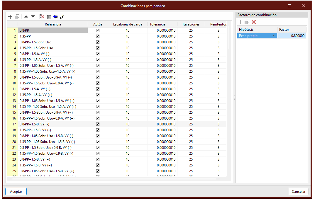 - Las combinaciones no reflejan las situaciones de proyecto (servicio/últimas, escenarios, etc.).