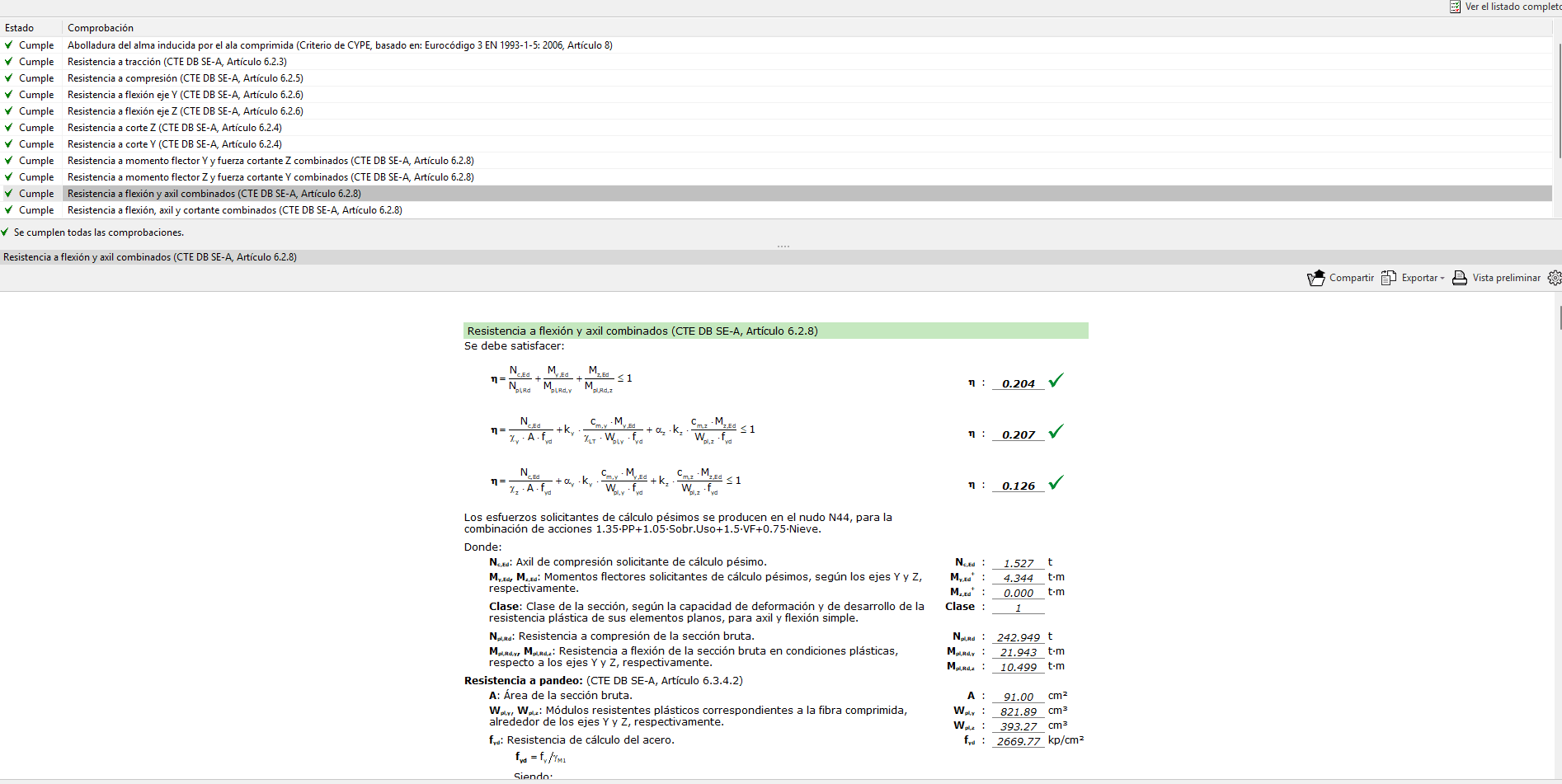 - Comprobaciones: identificar qué barras/nudos/láminas no cumplen (si aplica) y por qué.