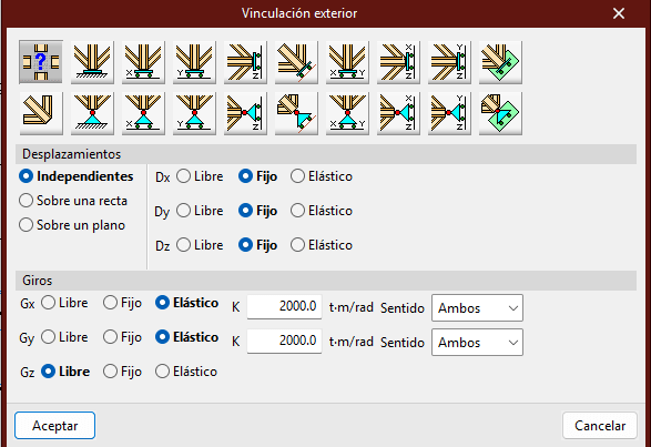 En una nave metálica, los apoyos en la base de pilares condicionan desplazamientos, esfuerzos y estabilidad. En Nudo → Vinculación exterior, revisa: