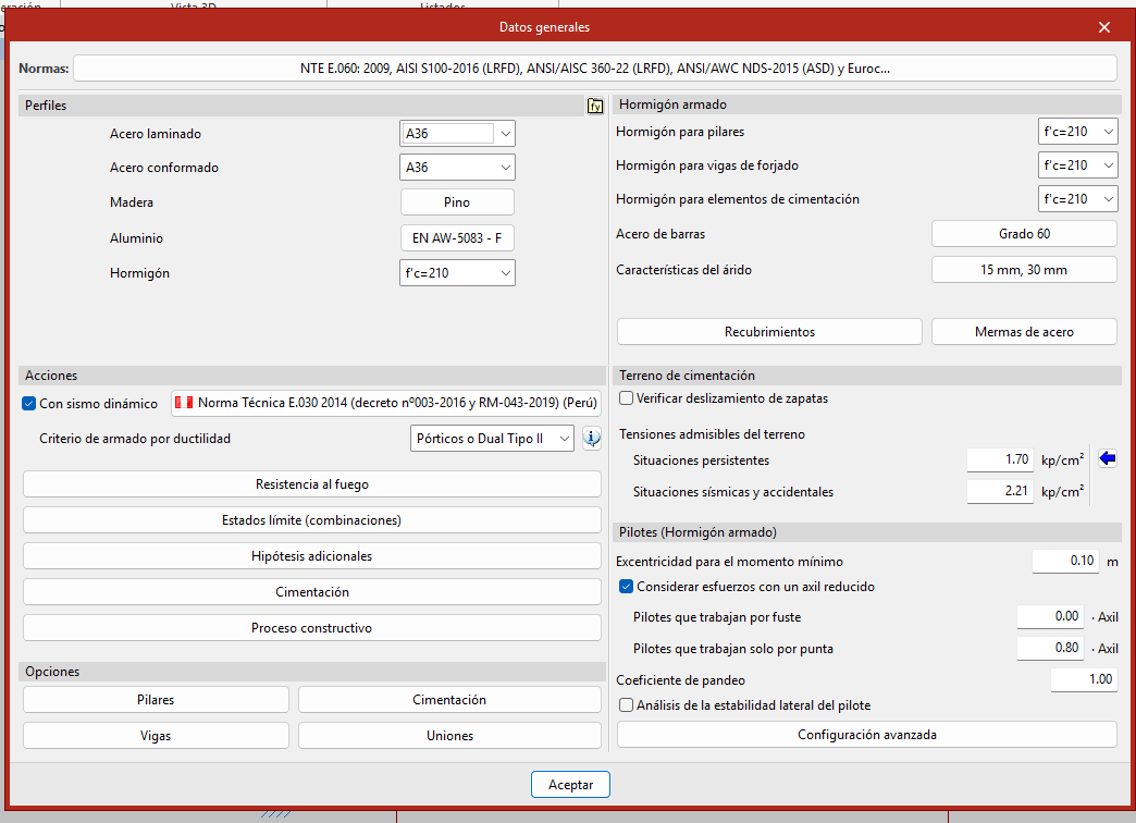 5) Hipótesis de carga: organiza desde “Datos generales”