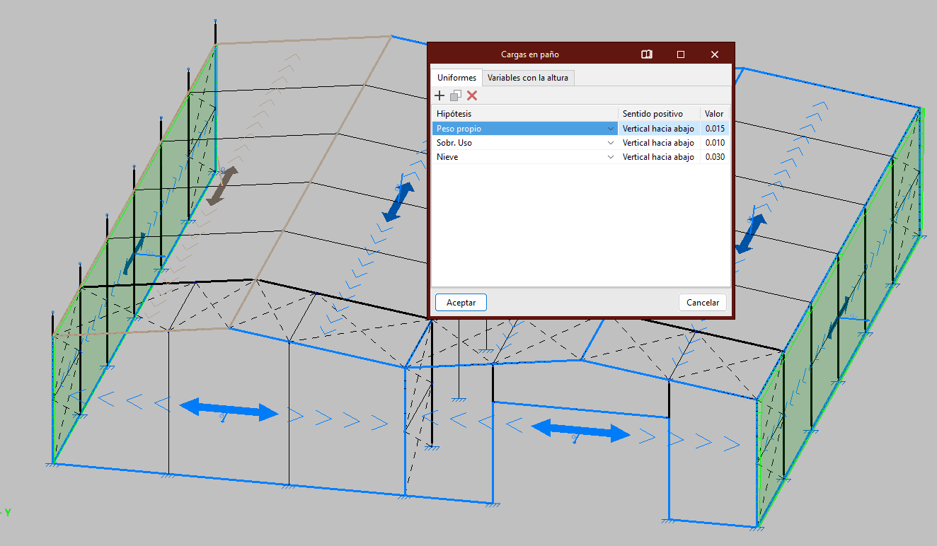 - Los paños de carga y las cargas superficiales (viento/nieve).