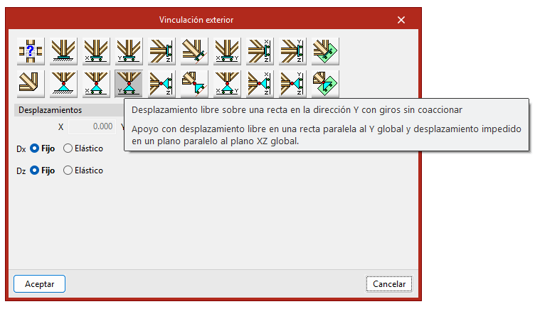 • Ideas para modelarlo bien: Útil para apoyar vigas continuas en varias luces o puentes; asegúrate de definir la dirección correcta del desplazamiento permitido.